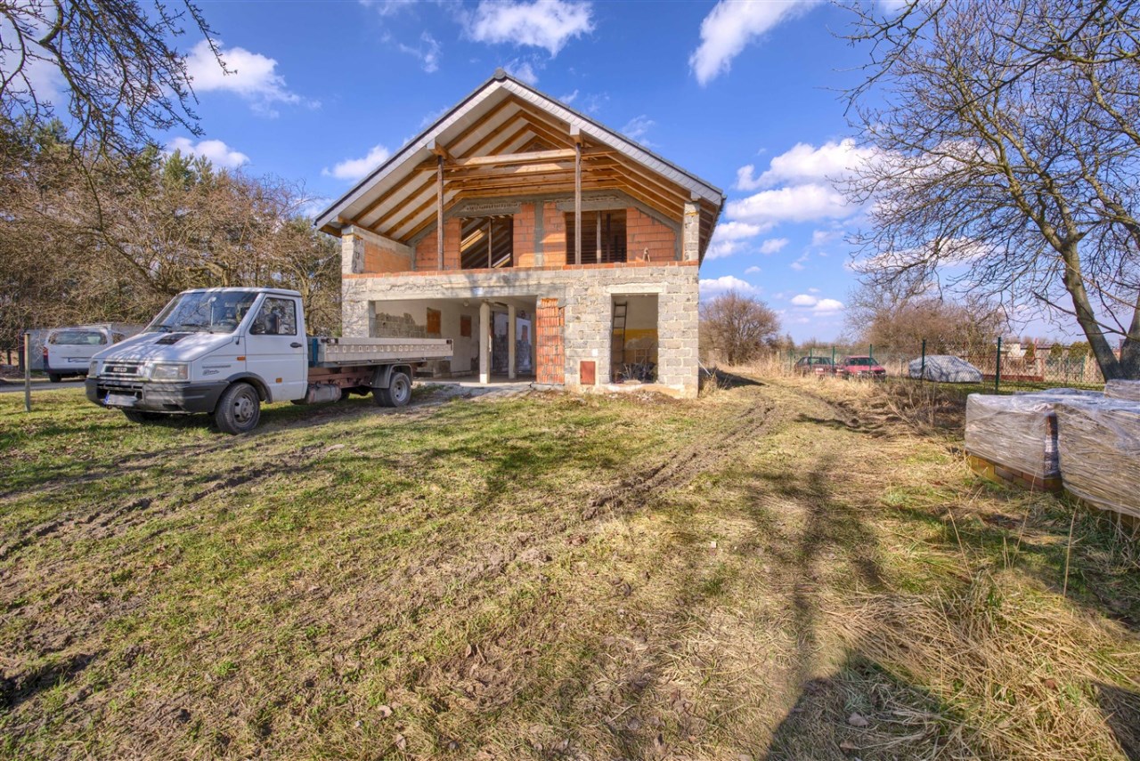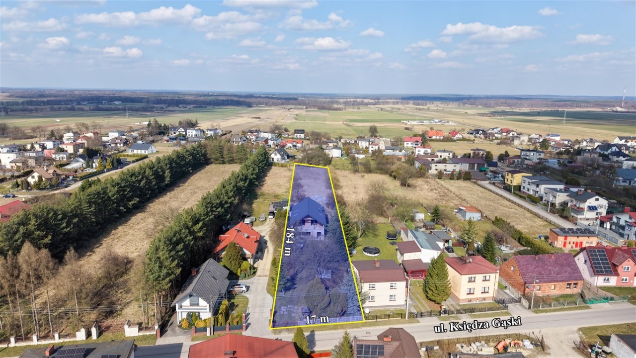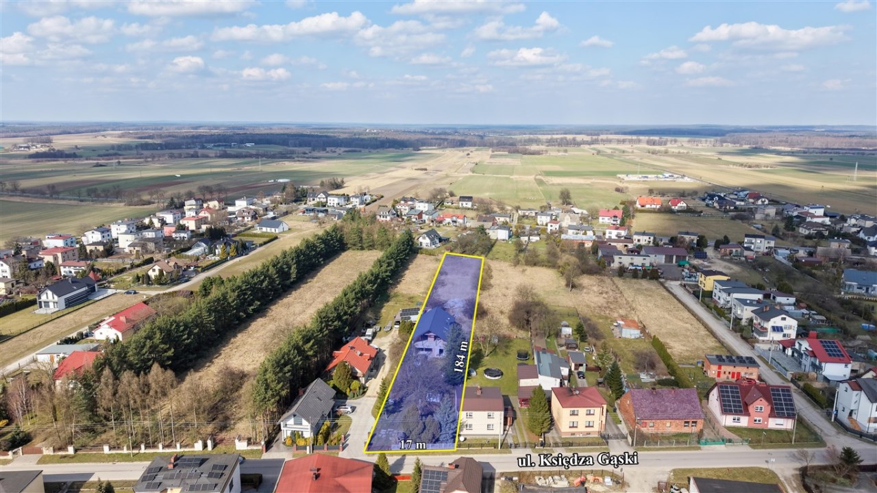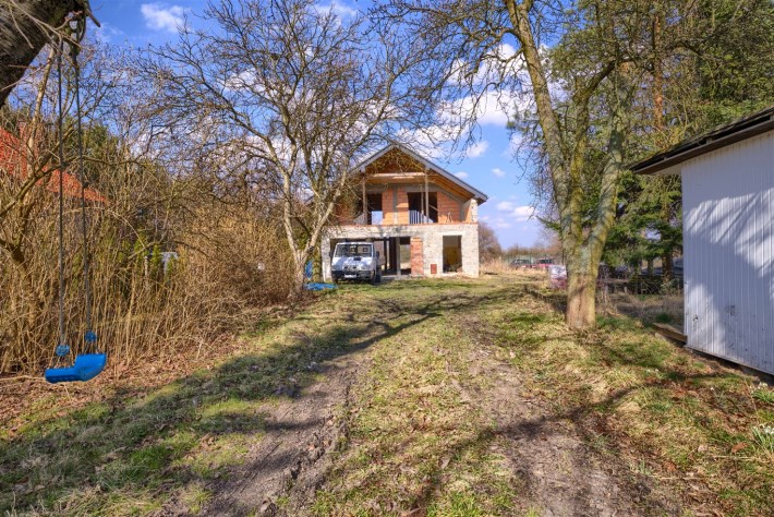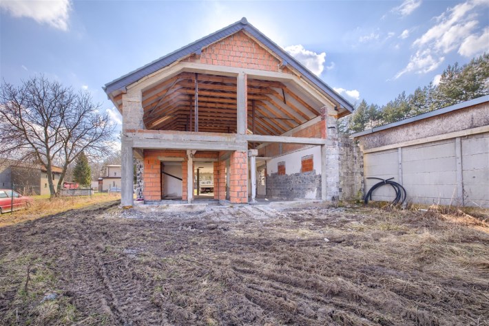 Na sprzedaż rozpoczęta budowa domu jednorodzinnego położonego na dużej działce w spokojnej i zielonej części Koszęcina, przy ul. ks. Gąski.