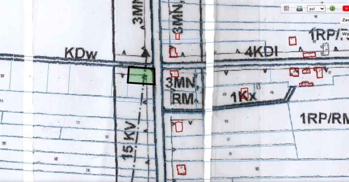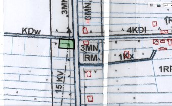 Media: woda i prąd w drodze przy granicy działki.