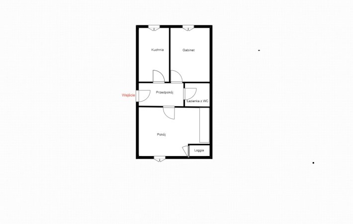 W większym pokoju znajduje się duża wnęka, którą wykorzystano na zabudowanie pojemnej szafy. Alternatywnie można przenieść kuchnię we wnękę ( bliskie sąsiedztwo łazienki i instalacji) wówczas kuchnia będzie ew. trzecim pokojem.