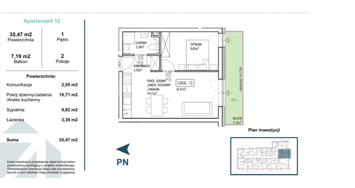 Powierzchnia użytkowa 35,47 m²
